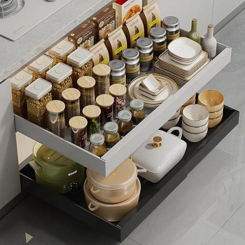 Ongeopend, in seal, foto indicatief (kleur zwart), WQU Uittrekbare kastorganizer met telescopische lade (zwart), kastlade om te lijmen, lade voor keuken, badkamer en meer, keukenkast opbergsystemen, kastlade uittrekbaar, B0D5QDK1Z2