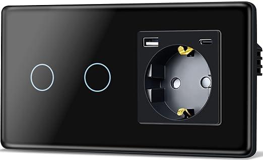 2 x TAWOIA Touch-lichtschakelaar met stopcontact