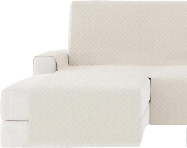 Ongebruikt, ok, GAMUSI Bankhoes voor chaise longue, 200 cm, hoekdeel links (tot 230 cm breed), gewatteerd, effen, katoen, ademend, ecru,B0CNW9C5KL