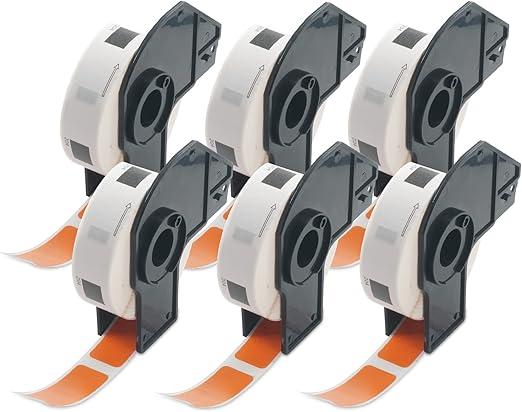 6 rollen DK-11208 grote oranje adreslabels compatibel met Brother