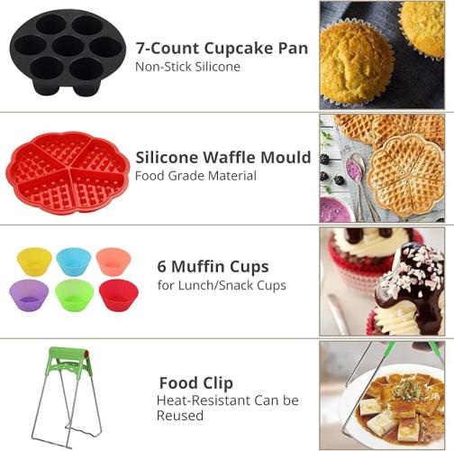 Ongeopend, HOMGEN - Airfryer Accessoires - 16 Stuks Accessoires 8" voor Air Fryer GoWise Phillips Cozyna Power Universeel 4.5QT-6.8QT Taartpannen Pizza Roosters Vormen voor Hot Dog Muffin Handschoenen , B0946FH1RH