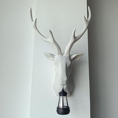 Ongeopend, in seal, Hertenkop wanddecoratie met zonlicht, waterdicht harsmateriaal, dierensculptuur, woondecoratie, ideaal voor woonkamer, eetkamer, kantoor, café, tuin, eenvoudig te monteren (wit), B0F242FY2Q