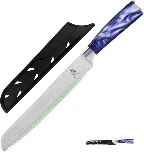 Ongeopend, ok, FULLHI Broodmes,Multi Colour 8 inch Japans Mes, Taartmes Roestvrij Staal Keukenmes met Schedebescherming (Paars Hars), B0D7ZSZQR8