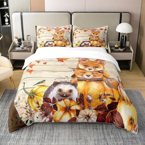 Ongeopend, in seal, Homewish Herfst esdoornblad 100% katoen beddengoedset 135 x 200 cm, leuk honden konijn egel dekbedovertrek, rustieke boerderij pompoenen herfst oogst trooster afdekking, vintage houten plank bed set, B0CGR578Q8