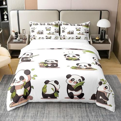 Ongeopend, in seal, Homewish Kinderpanda, 100% katoen, leuke panda, dekbedovertrek voor jongens en meisjes, Kawaii panda, wit en zwart, bedrukte beddengoedset, mooi dierenthema, dekbedovertrek met ritssluiting, stropdassen, 155 x 220, B0D3F61KWV