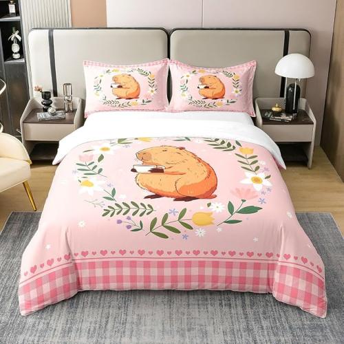Ongeopend, in seal, Homewish 100% katoen meisjes grappige Capybara beddengoedset 155 x 220, kleurrijk bloemendekbedovertrek, schattige Capybara dekbedovertrek, bruin Kawaii huisdier dierenbeddengoed, afdekking, roze, B0D41ZQ7WM
