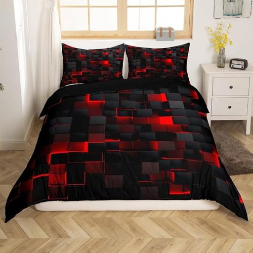 Ongeopend, in seal, Homewish Rood en zwart beddengoed, 220 x 240 cm, neon geometrisch geruit, kinderdekbedovertrek, abstract vierkant rooster, dekbedovertrek, gloeiend, geruit, moderne kamerdecoratie, B0D4TR86H1