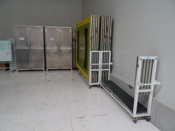 plm 140 stuks samen met 3x inox screencabinet en 8x metalen kar