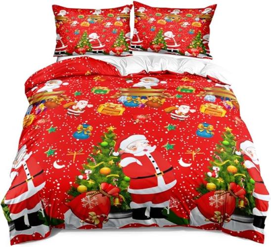 Ongeopend, ok, Luowe Kerstbeddengoed (240 x 260) 3D Microvezel Kerstman Model Winter Thema Comfort Dekbedovertrek Kerstmis Feest Decoratie Slaapkamer in Rood met 65 x 65 cm Kussensloop, B0DFWBT5F3