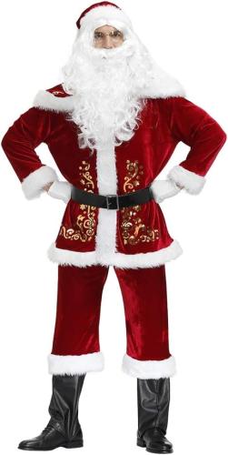 Ongebruikt, volledig, ok. Proumhang Kerstmankostuum voor heren, 9-delig, kerstkostuum voor volwassenen, fluweel, luxueus, rood, XXL, B08GC9JJ4H