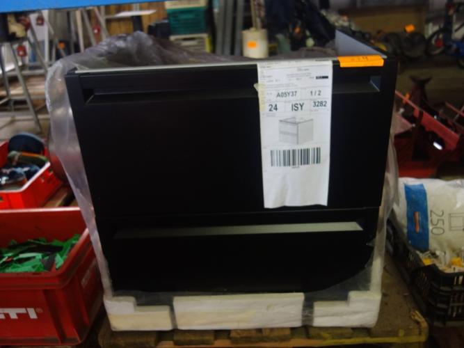 Onderkast (zwart) met 2 laden 60 x 60 met uitsparing voor afvoer