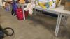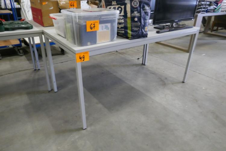Metalen tafels lichtgrijze kleur met houten bovenblad ( bureelruimtes ) - 5 stuks