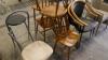 Partij diverse stoelen : 4 terrastoelen - 2 vintage stoelen - kinderstoeltje - stoffen eetkamerstoel - 2 zwarte eetkamerstoelen - 4 houten stoelen - tabouretje ( zie fotos )