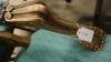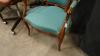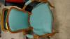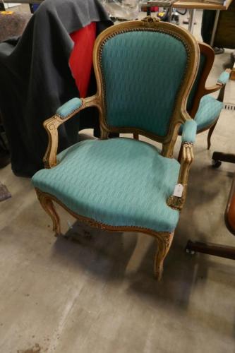 2 houten vintage zetels Louis XV stijl, stoffen bekleding turqoise kleur