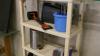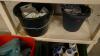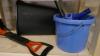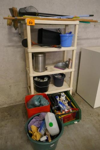 Plastieken rek met inhoud : divers poetsgerief en schildergerief