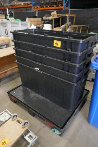 Plastieken pallet + 5 kunststof opbergbakken