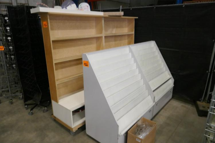 2 houten winkelrekken voor kranten en tijdschriften - diverse modellen