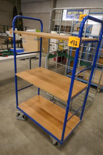 Stalen verrijdbaar rek met 3 legborden en zwenkwielen