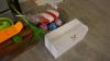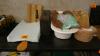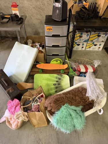 Plastieken Opbergbox 4 laden - el.verwarmingstoestel CALOR - skatebord - slede - kerstartikelen - gieter - badje - vintage valies - textief (sjaals, mutsen) - parasol, … enz….