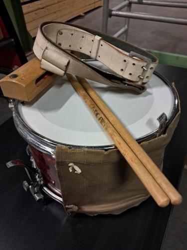 Trommel fanfare met riem en opbergbakmetaal (goede staat) Metaal Ø35