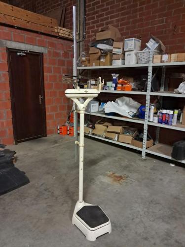 Zeer oude personenweegschaal+meetlat ziekenhuis