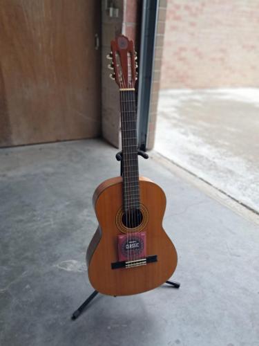 Gitaar met steun nieuwe snaren