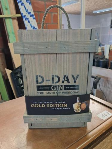 Fles Gin Gold Edition ongeopend in houten kist
