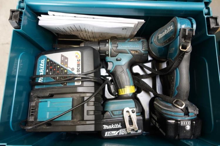 oa: accu werflicht, accu schroefboormachine, accu wrijfmachine, samen met 3x accu en 1x lader