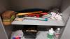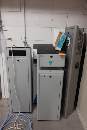 oa: 2x metalen dossierkast met inhoud, tafel, kar, 3x laadpaal,...