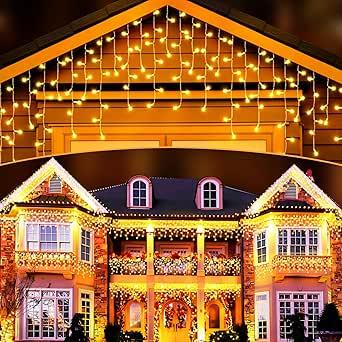 Ongebruikt, getest en werkend, ok, originele verpakking ontbreekt, Elegear Lichtsnoer voor buiten, 20 m, 800 leds, ijsregen, uitbreidbaar lichtgordijn met timer, IP44, warmwit, ijspegels, lichtketting, raam, 8 modi, kerstverlichting voor kerstdecoratie, dakrand, B0C9HY2QFW