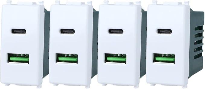 Ongebruikt, ok, Serie fruitstopcontacten omschakelschakelaar, compatibel met Vimar Plana (4, USB-C + USB-A 5 V 3,1 A 2 aansluitingen),B0BGQDBP9S