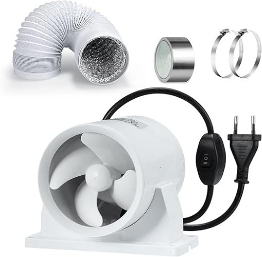 Ongeopend , kit met Kanaalbuisventilator, 100 mm, hoog/laag toerentalregelbaar, afvoerventilator + kanaalslang + plakband, kit B0CC1MPZBT