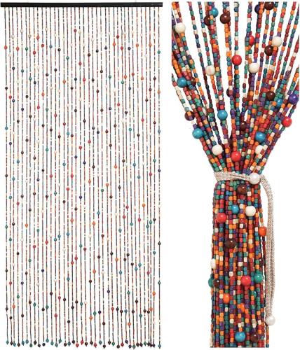 Minieme gebruikssporen, originele verpakking ontbreekt, ok, Ezcasch Kralengordijn (90 x 200 cm), deurgordijn als decoratie en insectenbescherming, 38 strengen, Boheemse stijl, bamboegordijn, handwerk, van bamboe en houten kralen voor raam/kamer, B0CXS6HVKJ