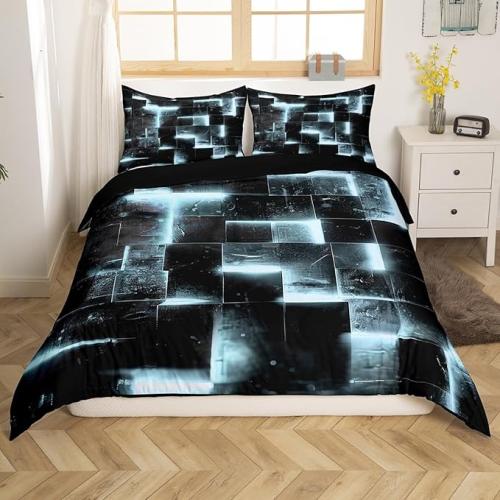 Ongeopend, in seal, Homewish Zwart en grijs wit dekbedovertrek, modern abstract, 200 x 200 cm, beddengoedset, 3D gloeiende plaid, comfortabele overtrek, kleurverloop, bed, neon vierkant beddengoed (zwart omkeerbaar), B0D2TLMK7Z