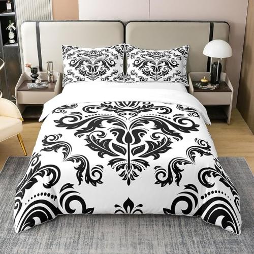 Ongeopend, in seal, Homewish Dekbedovertrek 220x240 Volwassen Katoen Barok Damast Bloemen Beddengoed Set voor Vrouwen Mannen, Gothic Bloemen Beddengoed Set Boho Zwart en Wit, Victoriaans Europees Dekbed, B0D1CG1MNG