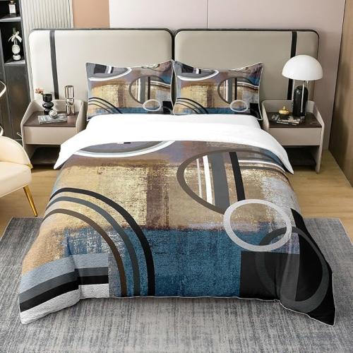 Ongeopend, in seal, Homewish Retro Geometrisch Dekbedovertrek 100% Katoen 240x260 Vintage Grunge Stijl Beddengoed Set, Bruin Zwart Blauw Grijs Beddengoed Set, Abstracte Olieverfstijl Dekbedovertrek, Zacht, B0CLV35XXD