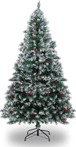 Ongebruikt, volledig, ok, Kunstmatige Kerstboom, 6ft/180cm Sneeuwspray Kerstbomen met 1000 Sneeuwgeklooide Filialen, Dennenappels en Rode Bessen, Metalen Standaard, Xmax Boom voor Thuis, Kantoor, Feestdecoratie, B0B5V2STCS