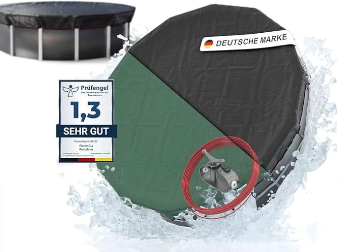 Gebruikssporen, ok, Planenfux® Zwembadafdekking rond 500 cm (voor zwembaden met een diameter van 460 - 500 cm), 2-in-1 zwembadzeil van 200 g/m² PE-materiaal, zomer en winterzeil, uv-bestendig zonnezeil, afdekzeil, Ø560,B0BW9PND8J