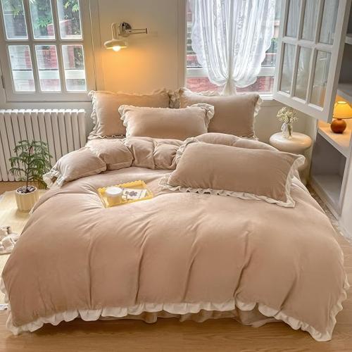 Ongeopend, in seal, ok, TOPCHANCES Pluche beddengoed, 135 x 200 cm, meisjes, fluweelzacht pluche, flanel, dekbedovertrek met ritssluiting, met kussenslopen 80 x 80 cm, camel,B0DBYYN6MF