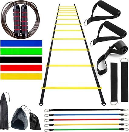 Ongeopend, Voetbaltrainingsset, voetbaltrainingsaccessoires, coördinatieladder, 6 meter, 12 sporten, 5 fitnessbanden, 5 weerstandsbanden, 1 springtouw, voetbaltraining , B0CGKNL19R