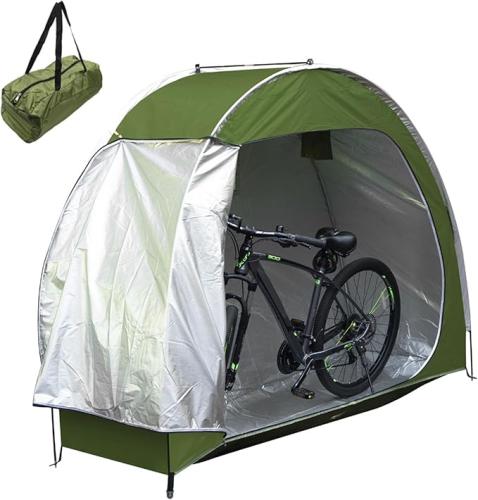 Minieme gebruikssporen, ok, TAZZOR Fietstent, 195 x 80 x 163 cm, waterdicht en met opbergtas, weerbestendig voor fietsschuur buiten, tentgarage en gereedschapstent, fietsgarage, B0DPKGBZR7