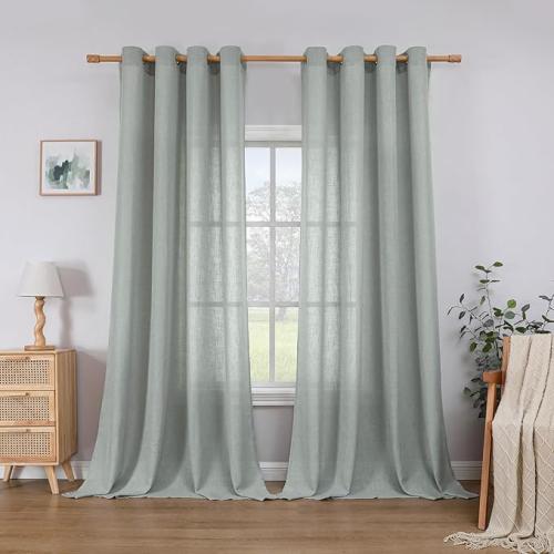 Ongeopend, in seal, CUCRAF Linnen gordijnen met oogjes landhuisstijl voile gordijn half-transparant gordijnen voor slaapkamer kinderkamer woonkamer, H 260 x B 140 cm, set van 2, saliegroen, B0CKDYW1VS
