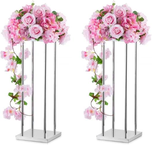 Ongebruikt, ok. Inweder Bloemenstandaard, bruiloft, tafeldecoratie, 2 stuks, zilveren bloemenvazen, 60 cm hoog, plantenstandaard, rek, vloervaas van metaal, 2 verdiepingen, bloemenstandaard voor feest, podium, B0B2ZSG1DV