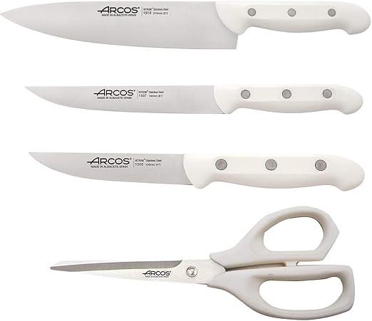 Ongeopend, ok, Arcos Keukenmessenset, wit mes | Keukenmessen Maitre | 4 stuks | Chef 215 mm, keuken 150 mm, groente 100 mm keukenschaar (wit), B08BX3WTPP