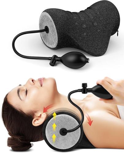 Minieme gebruikssporen, getest en werkend, ok, originele verpakking ontbreekt, Nek- en schouderontspanner, draagbaar cervicale tractieapparaat nekbrancard, nekhouding corrector chiropractie kussen voor TMJ pijnverlichting en cervicale wervelkolom uitlijning, B0BLSNSLH1