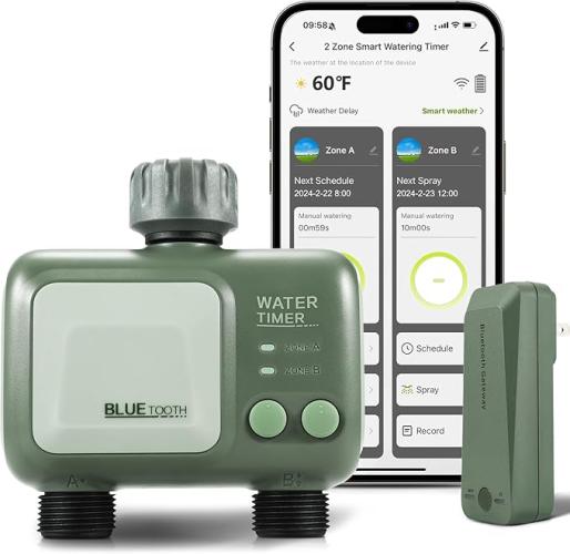 Ongeopend, ok, SOGUYI Smart WiFi Irrigatie Controller, 2 Outlet Water Timer voor Tuinslang, Groen, B0CP5J779H