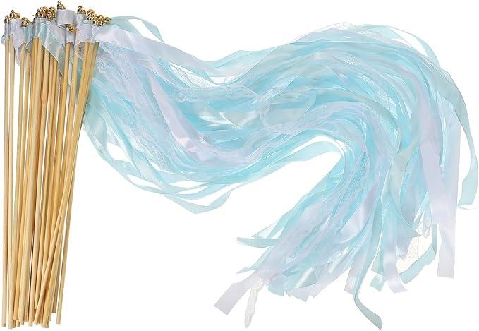 Ongeopend, in seal, PATIKIL Lint Sticks Fairy Wands, 50 Pack Lace Silk Fairy Stick Wand Send Off Streamers voor Bruiloft Feest Verjaardag Vakantie Viering, Lichtblauw/Wit, B0CHFQRQ5J