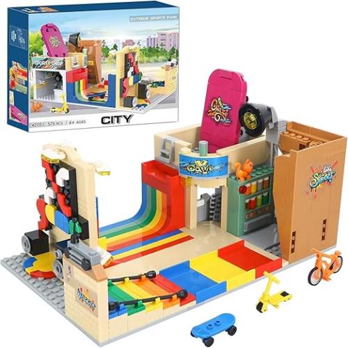 Ongebruikt, ok, Grote Skate Park-box, bouwspeelgoed met 4 minipoppen, skateboard, scooter, B0B4NG2RHS