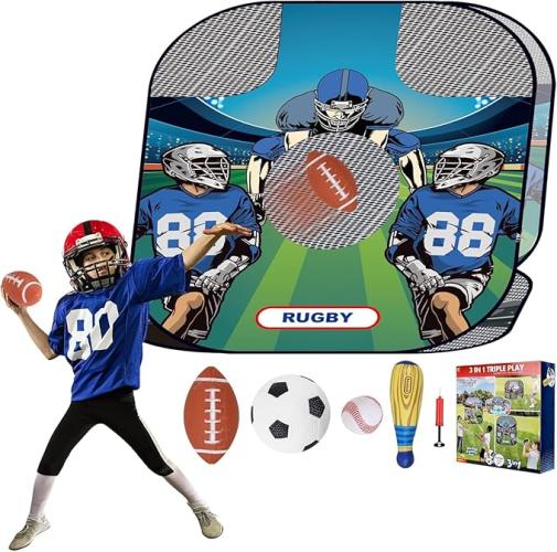 Ongeopend, in seal, SKERITO 3 in 1 speelnet, Rugby Voetbalknuffel voor kinderen, outdoor speelgoedbal, geschikt voor outdoor-sportspeelgoed,