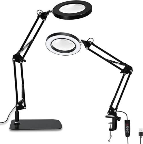 Ongeopend, in seal, Lychee 10x vergrootglas met licht en standaard, 3 kleurmodi traploos dimbaar glas vergrootglas handsfree 2-in-1 bureaulamp met zware basisklem, LED-verlichte vergrootglas voor reparatieambachten, B0DKJ5ZCSP